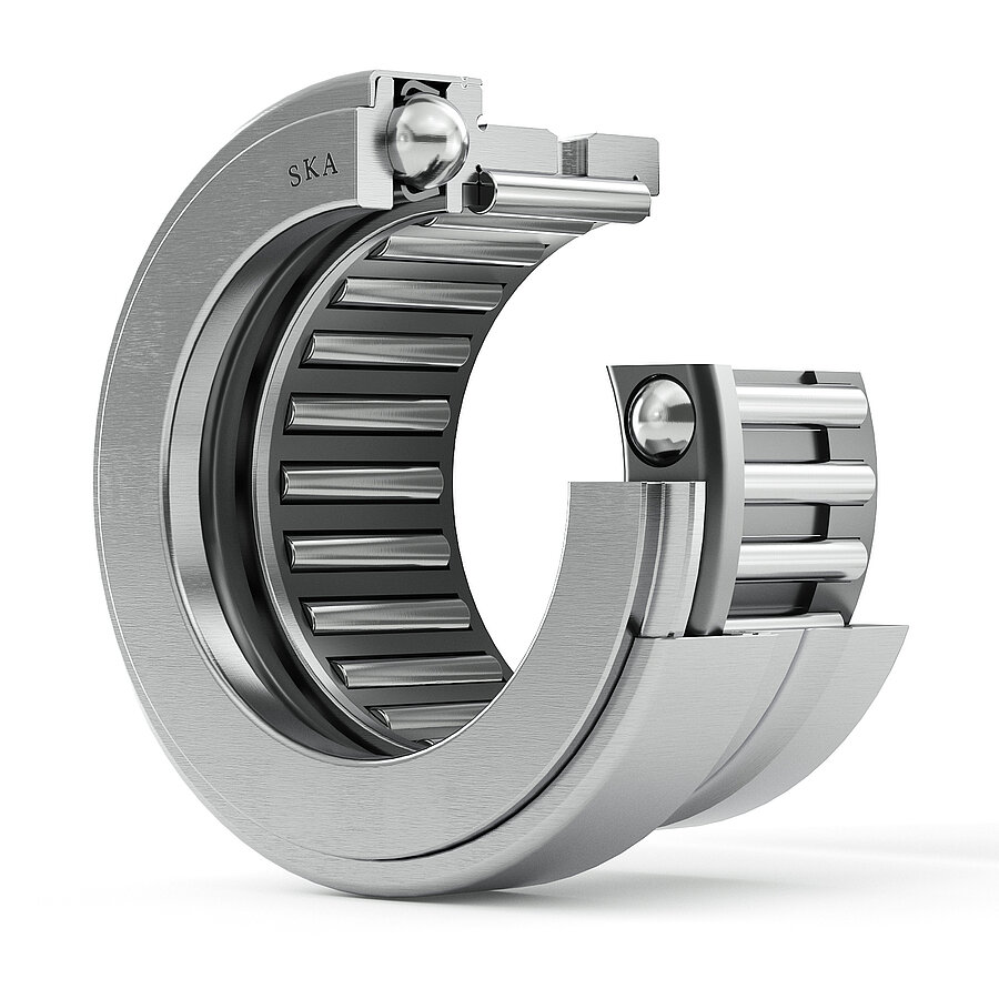 Nadel-Axialkugellager vereinen ein Nadellager mit einem Axial-Kugellager zu einer platzsparenden Einheit. Diese Kombination ermöglicht die gleichzeitige Aufnahme hoher radialer Lasten und axialer Kräfte in einer oder beiden Richtungen.