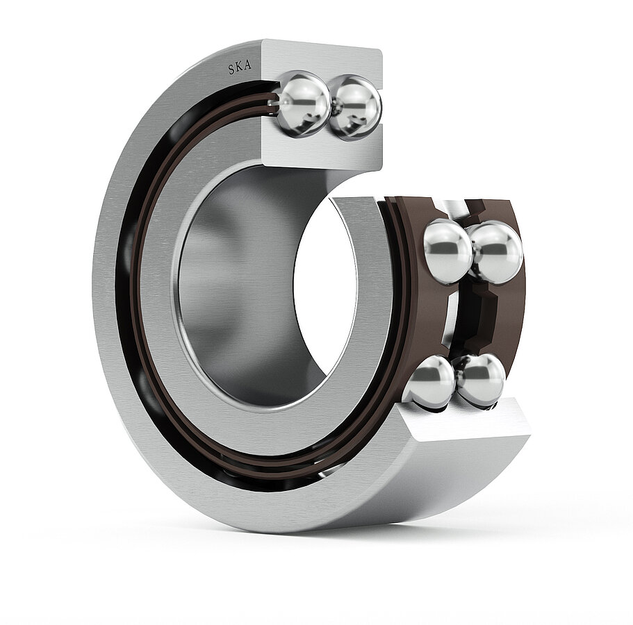 Durch die doppelte Kugelreihe können sie Axialkräfte in beide Richtungen übertragen und bieten gleichzeitig eine hohe radiale Tragfähigkeit. Die optimierte Laufbahngeometrie gewährleistet einen ruhigen Lauf und gleichmässige Lastverteilung über beide Kugelreihen – ideal für Anwendungen mit wechselnden Belastungsrichtungen oder begrenztem Einbauraum.